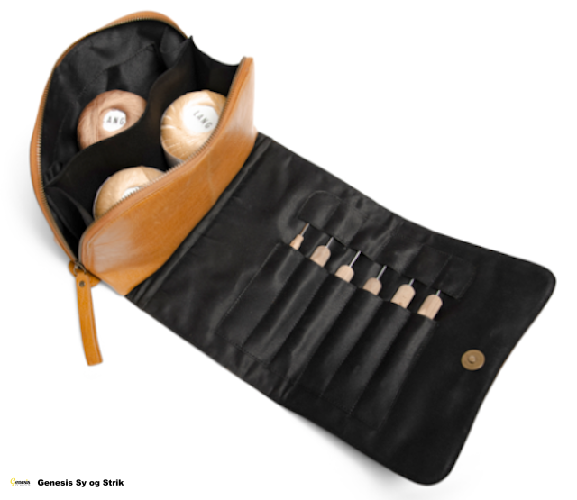 Tasken er designet med seks praktiske lommer på indersiden med plads til hæklenåle. Derudover finder du en indvendig lomme med lynlås og to åbne rum