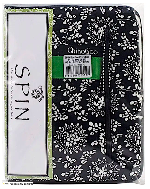 Chiaogoo sættet er med pinde i størrelserne: 2.75 mm., 3.25 mm., 3.5 mm., 3.75 mm., 4.0 mm., 4.5 mm., 5.0 mm., 5.5 mm. 6.0 mm., 6.5 mm., 8.0 mm., 9.0 mm. og 10.0 mm.