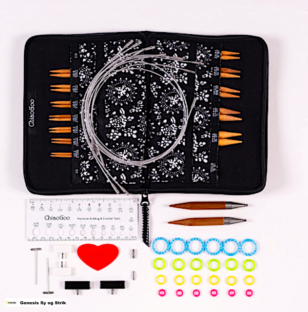 Chiaogoo Forté-sættet er et meget luksuriøst strikkepindesæt hvor de 13 cm. lange pinde er lavet af Afrikansk Blackwood og rustfrit stål.