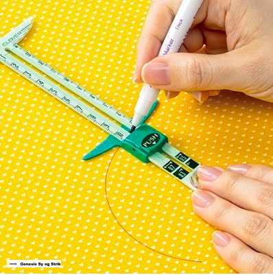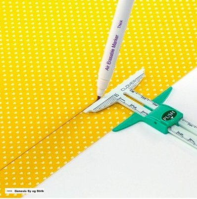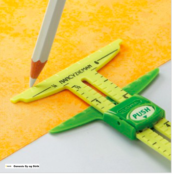 Et smart måleværktøj til måling af knaphuller, oplægninger og sømrum.