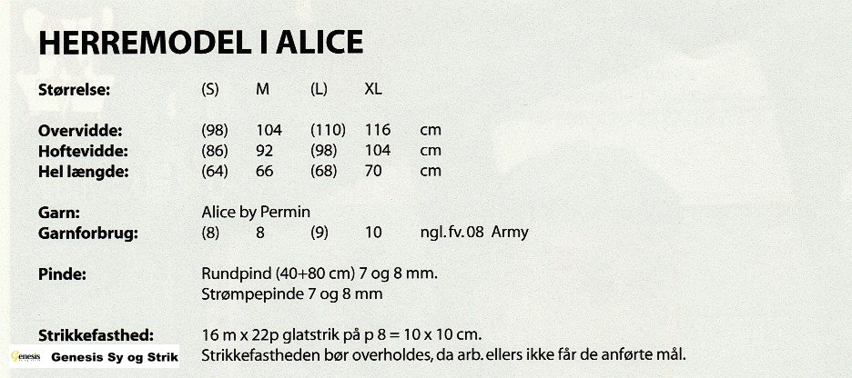 Klik på skemaet for at se størrelse, garnforbrug, pinde, strikkefasthed m.m.