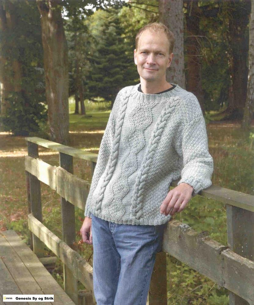 Aran-sweater m/ribærmer og krave