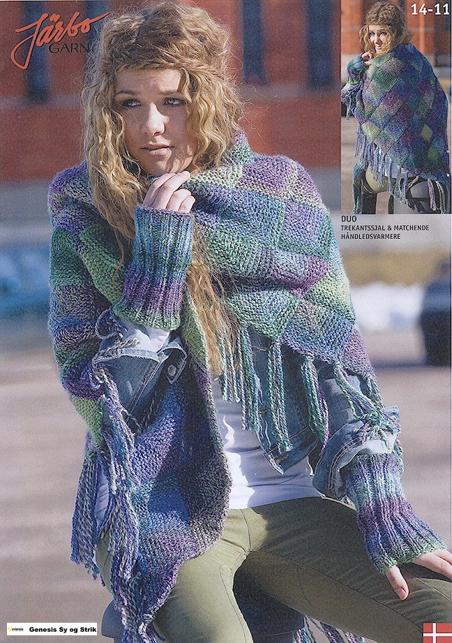 "Dominostrikket" trekantssjal & matchende håndledsvarmere