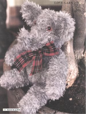 Tilbehør: Polyestervat til fyld, 2 glasøjne, bånd til sløjfe.