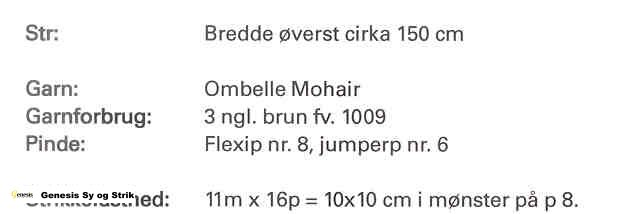 Klik på skemaet for at se størrelse, garnforbrug, pinde, strikkefasthed m.m.