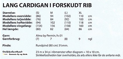 Klik på skemaet for at se størrelse, garnforbrug, pinde, strikkefasthed m.m.