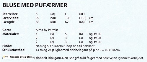 Klik på skemaet for at se størrelse, garnforbrug, pinde, strikkefasthed m.m.