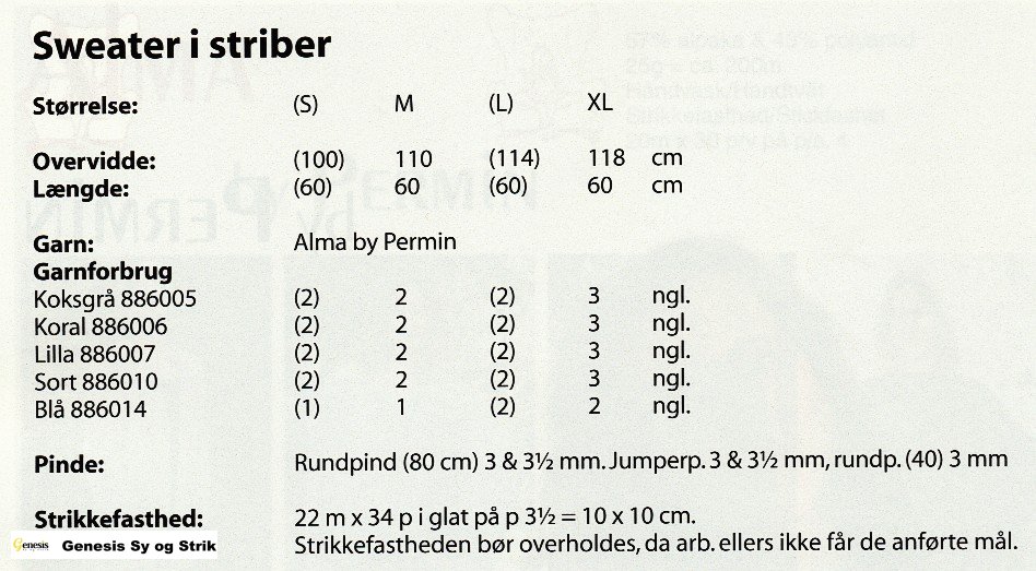 Klik på skemaet for at se størrelse, garnforbrug, pinde, strikkefasthed m.m.