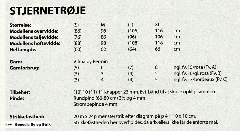 Klik på skemaet for at se størrelse, garnforbrug, pinde, strikkefasthed m.m.