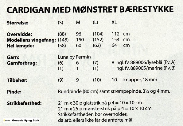 Klik på skemaet for at se størrelse, garnforbrug, pinde, strikkefasthed m.m.