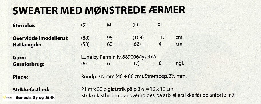 Klik på skemaet for at se størrelse, garnforbrug, pinde, strikkefasthed m.m.