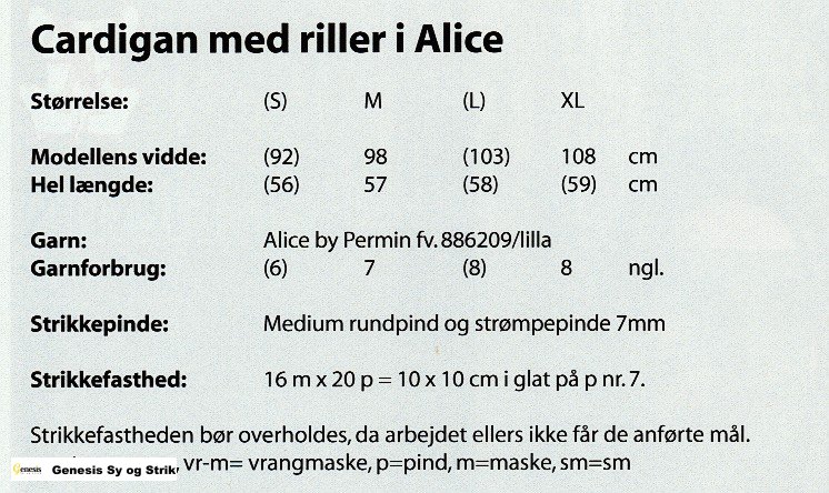 Klik på skemaet for at se størrelse, garnforbrug, pinde, strikkefasthed m.m.
