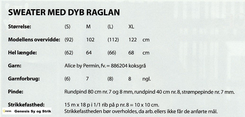 Klik på skemaet for at se størrelse, garnforbrug, pinde, strikkefasthed m.m.