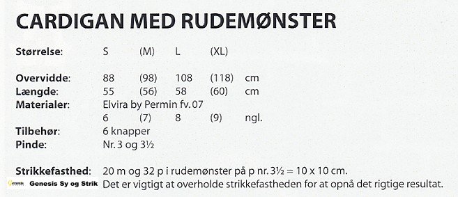 Klik på skemaet for at se størrelse, garnforbrug, pinde, strikkefasthed m.m.