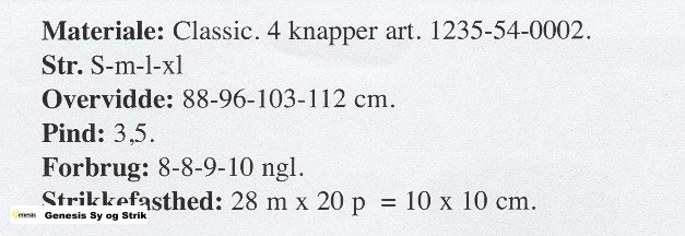 Klik på skemaet for at se størrelse, garnforbrug, pinde, strikkefasthed m.m.