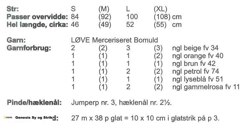 Klik på skemaet for at se størrelse, garnforbrug, pinde, strikkefasthed m.m.