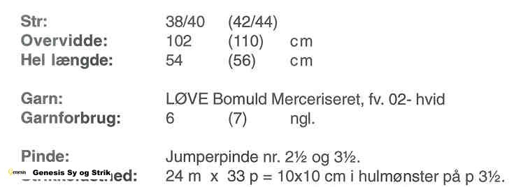 Klik på skemaet for at se størrelse, garnforbrug, pinde, strikkefasthed m.m.