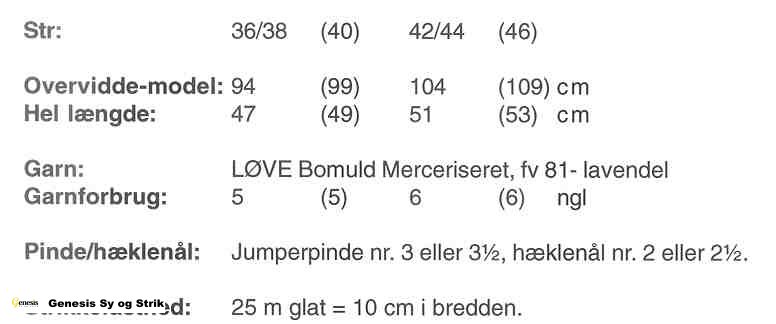 Klik på skemaet for at se størrelse, garnforbrug, pinde, strikkefasthed m.m.