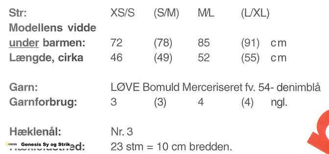 Klik på skemaet for at se størrelse, garnforbrug, pinde, strikkefasthed m.m.