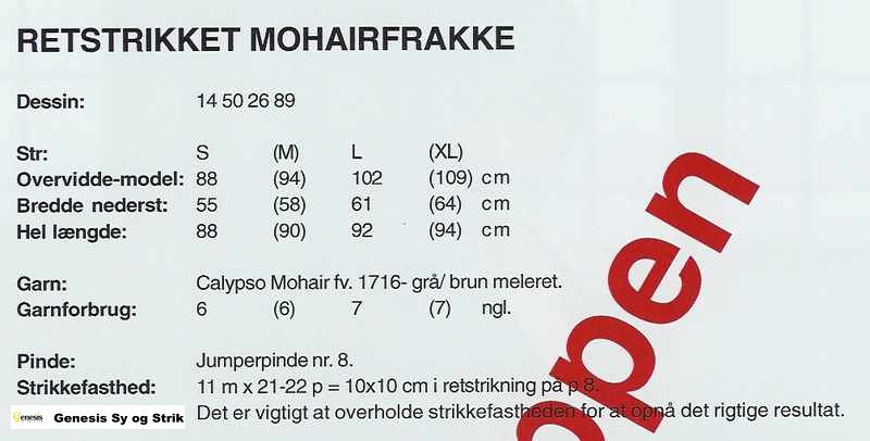 Klik på skemaet for at se størrelse, garnforbrug, pinde, strikkefasthed m.m.