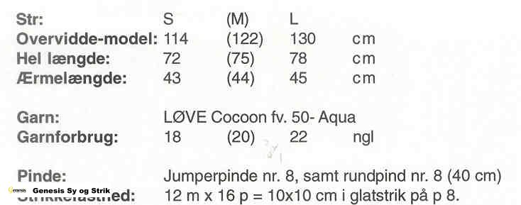 Klik på skemaet for at se størrelse, garnforbrug, pinde, strikkefasthed m.m.