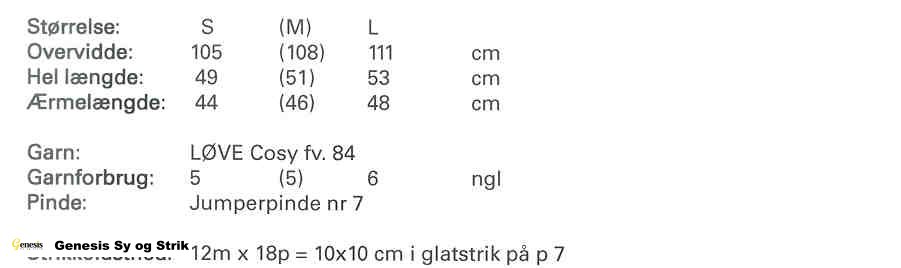 Klik på skemaet for at se størrelse, garnforbrug, pinde, strikkefasthed m.m.