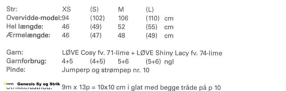 Klik på skemaet for at se størrelse, garnforbrug, pinde, strikkefasthed m.m.