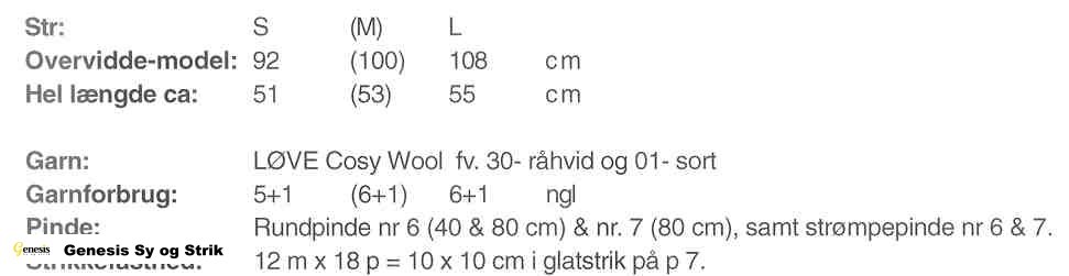 Klik på skemaet for at se størrelse, garnforbrug, pinde, strikkefasthed m.m.