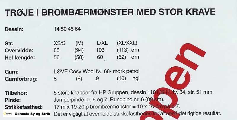 Klik på skemaet for at se størrelse, garnforbrug, pinde, strikkefasthed m.m.