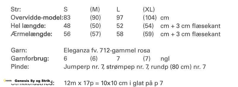 Klik på skemaet for at se størrelse, garnforbrug, pinde, strikkefasthed m.m.
