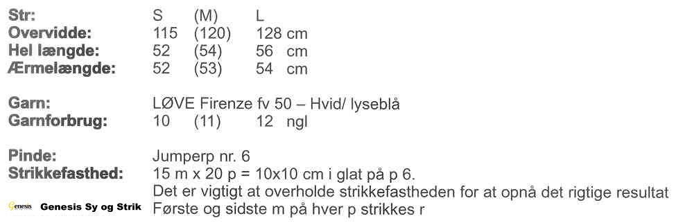 Klik på skemaet for at se størrelse, garnforbrug, pinde, strikkefasthed m.m.