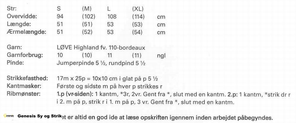 Klik på skemaet for at se størrelse, garnforbrug, pinde, strikkefasthed m.m.