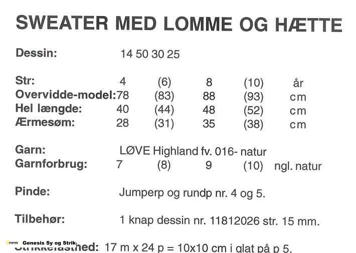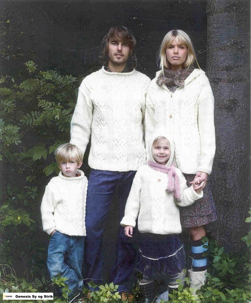 Strikkeopskrift på Arantrøje med hætte, Sweater med lomme og hætte samt Børne- og herresweater med fletmønster.