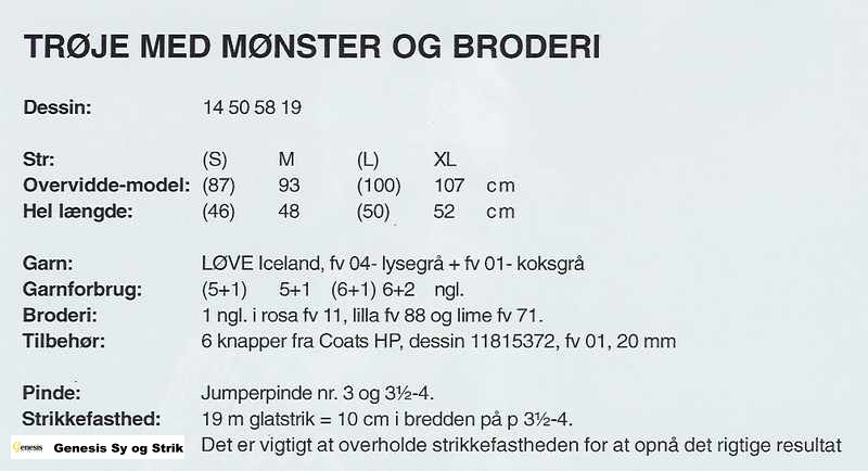 Klik på skemaet for at se størrelse, garnforbrug, pinde, strikkefasthed m.m.