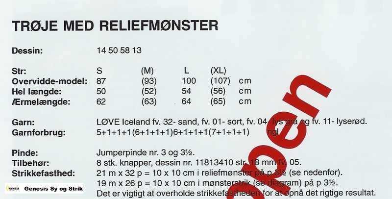 Klik på skemaet for at se størrelse, garnforbrug, pinde, strikkefasthed m.m.