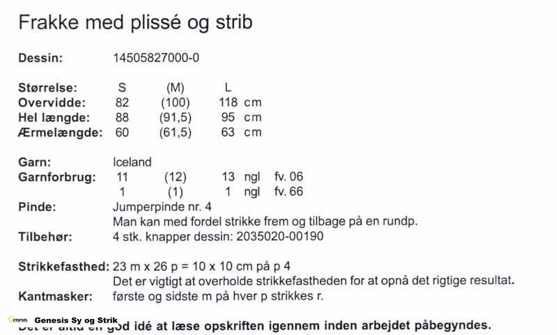 Klik på skemaet for at se størrelse, garnforbrug, pinde, strikkefasthed m.m.
