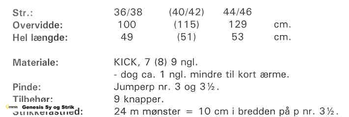 Klik på skemaet for at se størrelse, garnforbrug, pinde, strikkefasthed m.m.