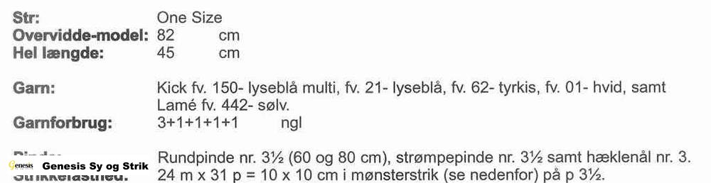 Klik på skemaet for at se størrelse, garnforbrug, pinde, strikkefasthed m.m.