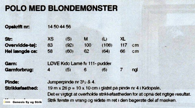 Klik på skemaet for at se størrelse, garnforbrug, pinde, strikkefasthed m.m.