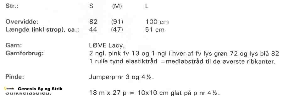 Klik på skemaet for at se størrelse, garnforbrug, pinde, strikkefasthed m.m.