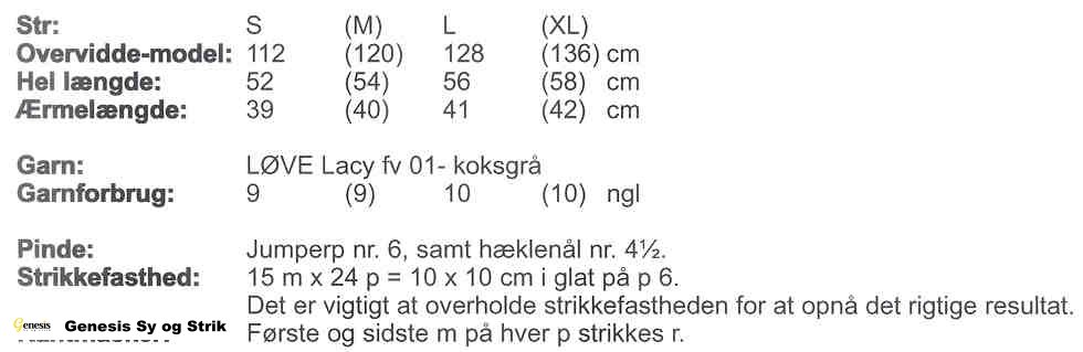 Klik på skemaet for at se størrelse, garnforbrug, pinde, strikkefasthed m.m.