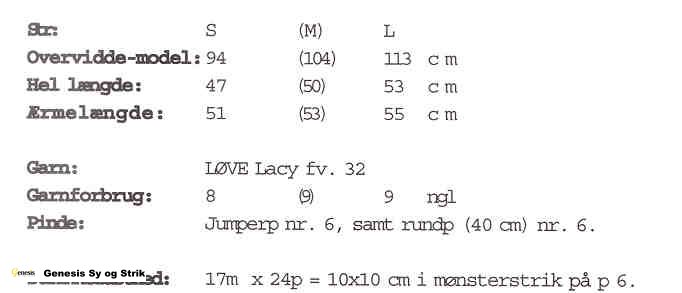 Klik på skemaet for at se størrelse, garnforbrug, pinde, strikkefasthed m.m.