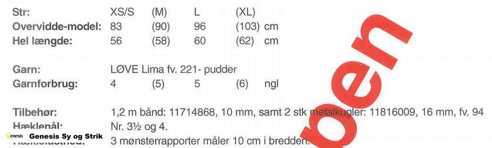 Klik på skemaet for at se størrelse, garnforbrug, pinde, strikkefasthed m.m.