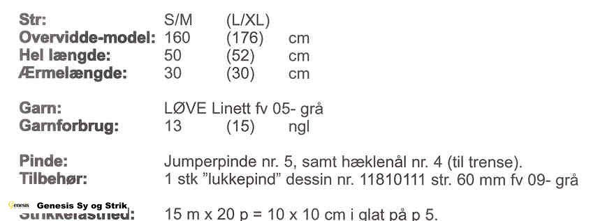 Klik på skemaet for at se størrelse, garnforbrug, pinde, strikkefasthed m.m.