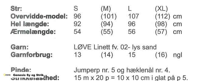 Klik på skemaet for at se størrelse, garnforbrug, pinde, strikkefasthed m.m.