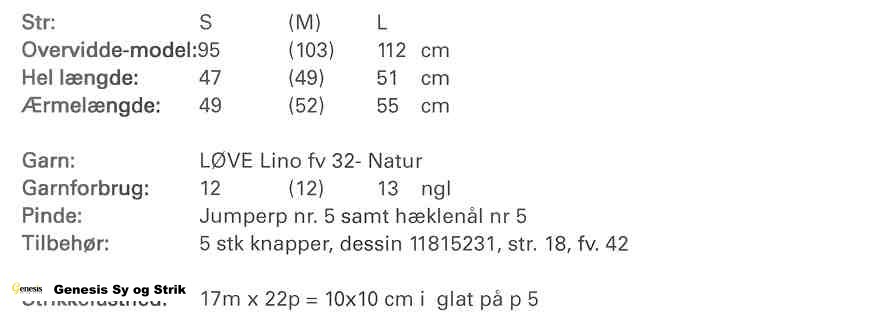 Klik på skemaet for at se størrelse, garnforbrug, pinde, strikkefasthed m.m.
