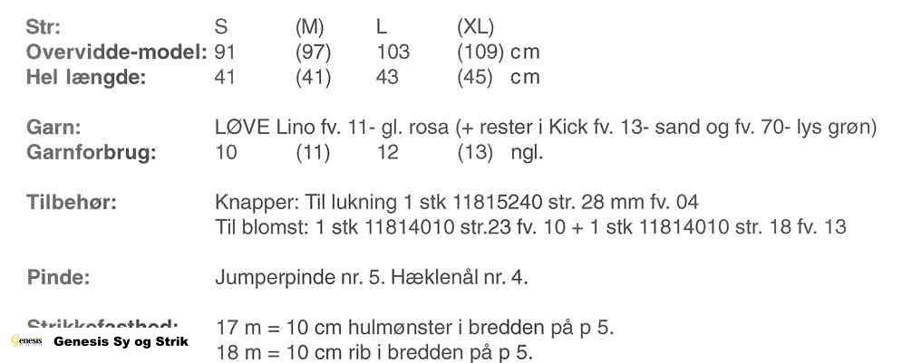 Klik på skemaet for at se størrelse, garnforbrug, pinde, strikkefasthed m.m.