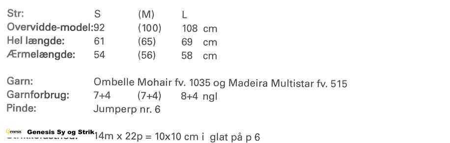 Klik på skemaet for at se størrelse, garnforbrug, pinde, strikkefasthed m.m.