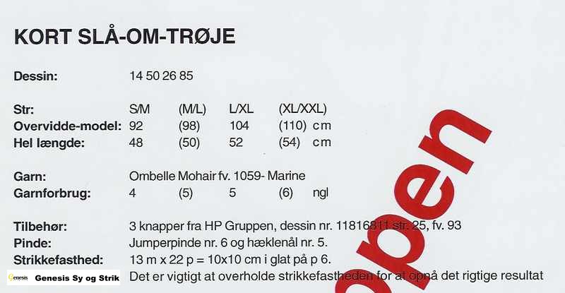 Klik på skemaet for at se størrelse, garnforbrug, pinde, strikkefasthed m.m.