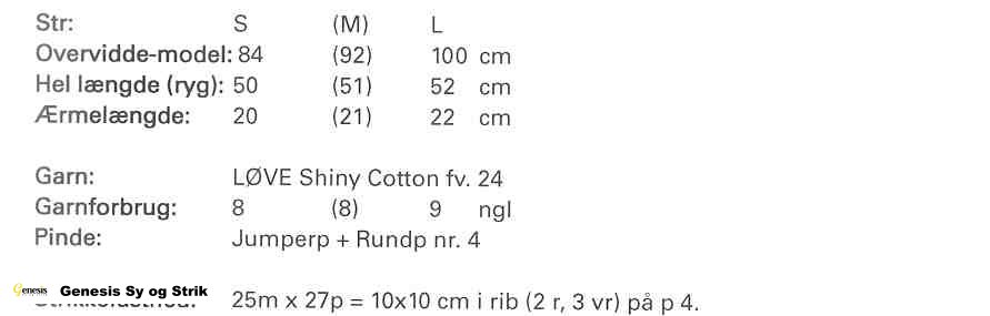 Klik på skemaet for at se størrelse, garnforbrug, pinde, strikkefasthed m.m.